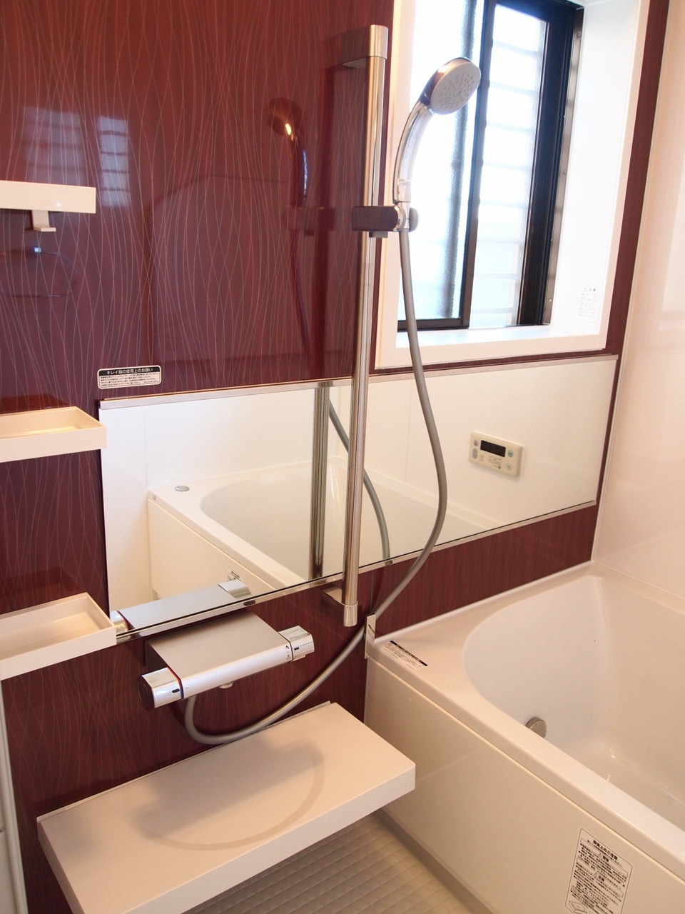 そろそろシステムバスを変えたいということで、LIXILショールームに見学に行かれご検討されていたS様。ご縁がありまして、入替工事をさせていただくことになりました。以前のものに比べ、浴槽も人工大理石で、キレイ浴槽というコーティングがされていますので、見た目もよく、お手入れも簡単です。 お選びいただいたガーネットレッドのアクセントパネルがとてもかっこよく、これはおすすめです。 ワイドミラーもつけたことで、広く見えるのも良かったと思います。