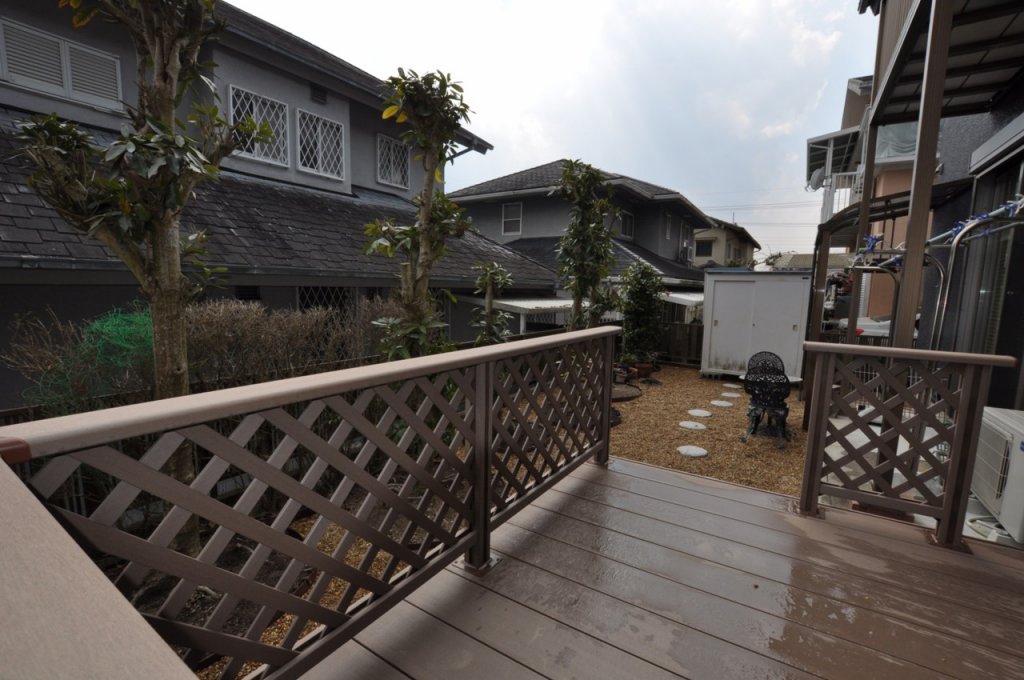 お部屋とお庭をつなぐウッドデッキが完成しました。
