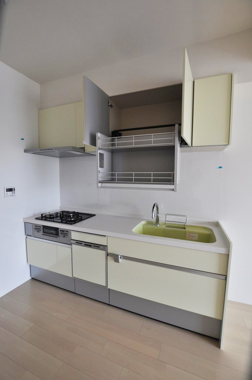 奥様が好きなグリーンと清潔なホワイトでコーディネートされてい